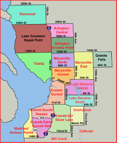 | Areas of Everett: Central Paine / Everett Mall Silver Lake / South East South / Seaway |